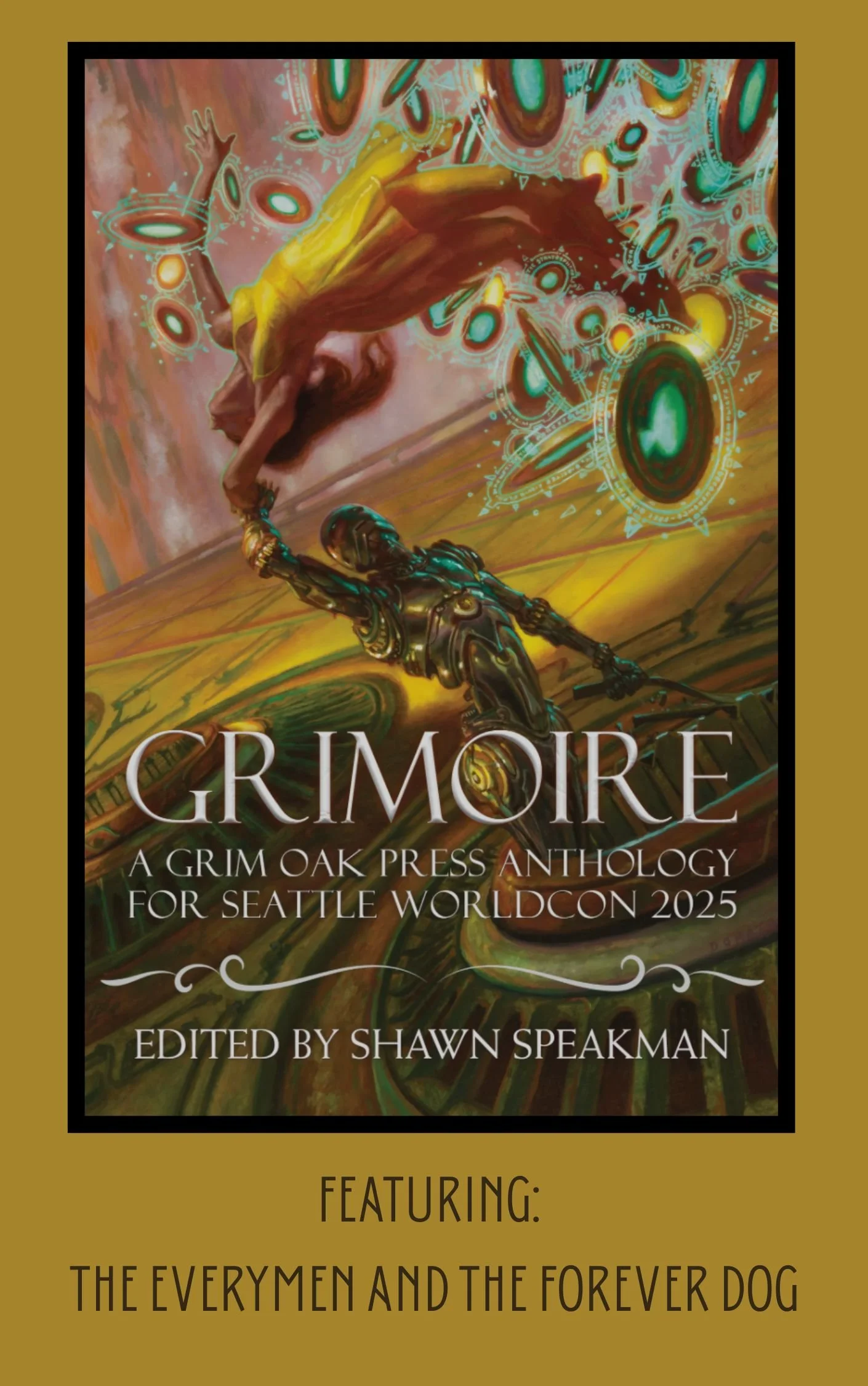 My contributions include “The Season of the Dead Girl” (Dragonsteel Nexus), “The Pine Tree Line” (Emerald City Comic Con), and “The Everymen and the Forever Dog” (WorldCon Seattle). These works appear alongside celebrated voices in fantasy and science fiction, making the Grimoire series both a literary showcase and a collector’s treasure.